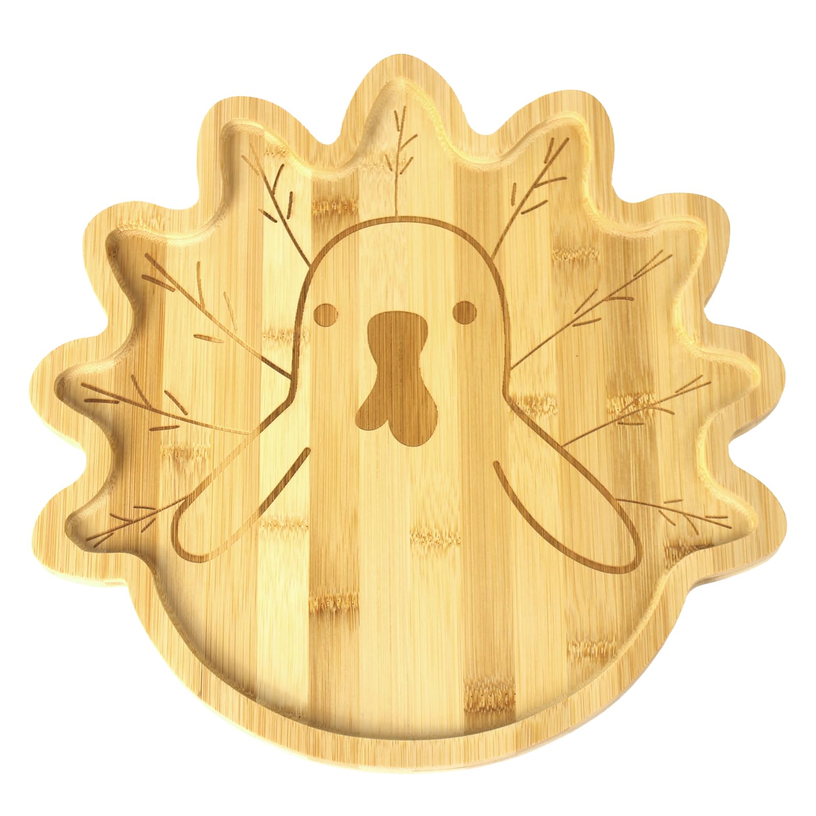 šŸ¦ƒć€Turkey Plate怑This bamboo turkey platter has a novel turkey look, and the size of the multifunctional aperitif board is 11.4" long x 11.4" wide x 0.6" high, can be used as dinner plates, fall dessert plates and birthday party decorations.