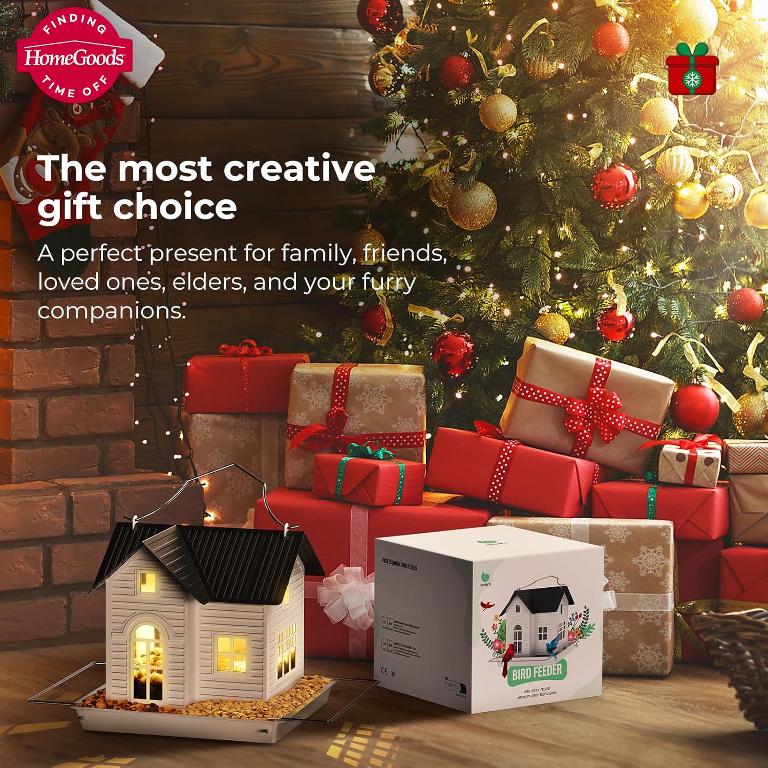 This adorable cottage-style bird feeder isn't just for feeding – it's a solar-powered glowing masterpiece! The house lights up automatically at dusk with warm yellow window glow, turning your garden into a cozy, fairy-tale scene every night. No wires, no hassle – just pure charm!
